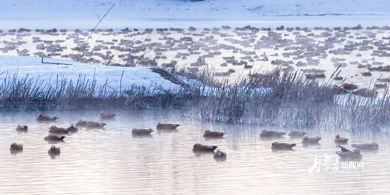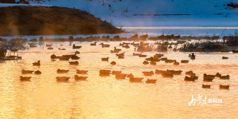 ​雪覆千岛玉纱轻,金霞破晓映湖明。12月24日,冬季的千岛湖银装素裹,湖区被皑皑白雪覆盖。清晨,一轮朝阳自天边缓缓升腾,金色霞光洒向湖面,光影流转间,天地一派清透空灵。在湖畔栈道上,赏景的市民游客纷纷举起手机、相机记录这难得的美景,赞叹声不绝于耳。湖中,同样生机盎然,成群的赤麻鸭在未结冰的水域嬉戏游弋,黑天鹅优雅划过水面,与白雪、红日构成一幅幅生动的生态画卷。摄影/草原云·内蒙古新闻网首席记者 牛天甲