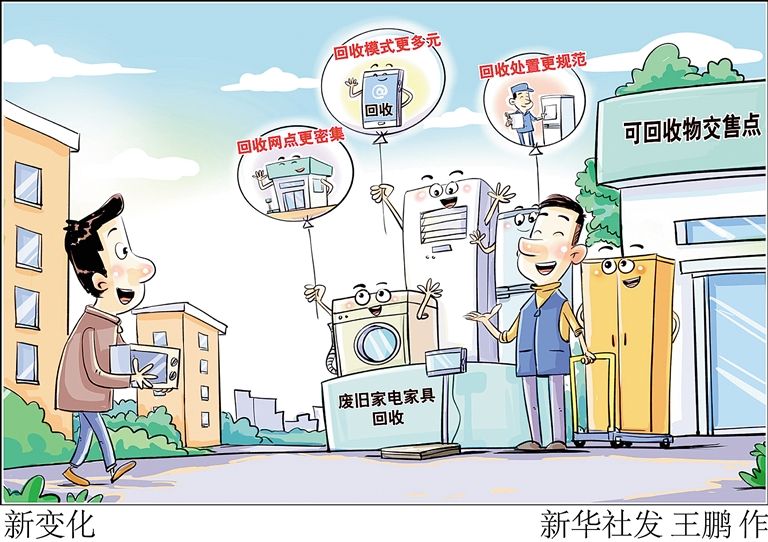 随着以旧换新政策持续发力显效,废旧家电家具如何回收、处置受到越来越多人关注。记者走访发现,除了生产企业和消费平台的售新收旧,废旧家电家具的回收、处置体系也日益完善,对于释放家电家具消费潜力,畅通再生资源循环利用发挥了积极作用。新华社发 王鹏 作