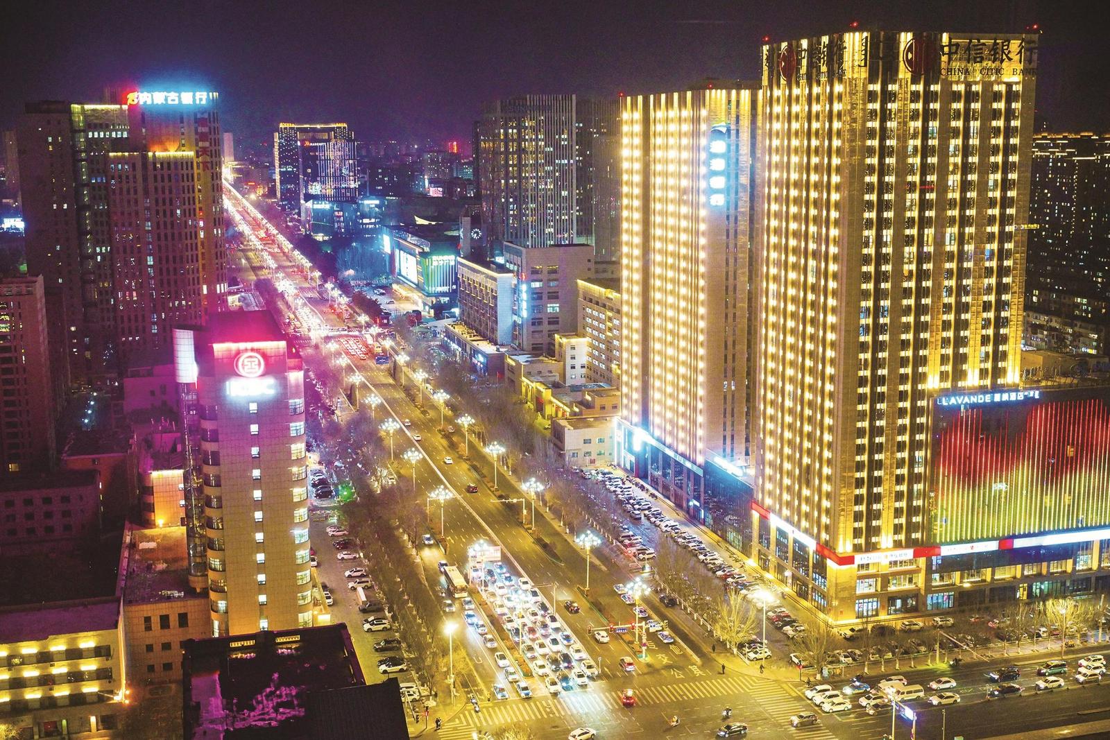 冬日夜幕低垂,包头市钢铁大街华灯初上。盏盏灯火与奔流的车流交织成线,五颜六色的光影在路面铺展,晕染出五彩缤纷的城市夜景画卷。 (李 强)