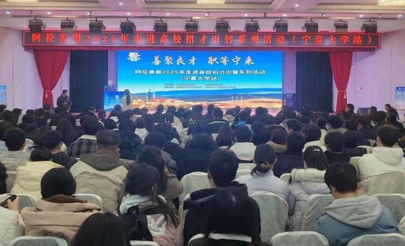 12月24日,“善聚良才·职等宁来”阿拉善盟2025年走进高校招才引智系列活动走进宁夏大学。阿拉善盟委副书记、盟长白海林,宁夏大学党委书记王宏伟出席活动,宁夏大学党委常委、副校长黄河致辞,阿拉善盟委委员、组织部部长雷海作人才政策宣介,阿拉善盟副盟长刘冲霄主持活动。