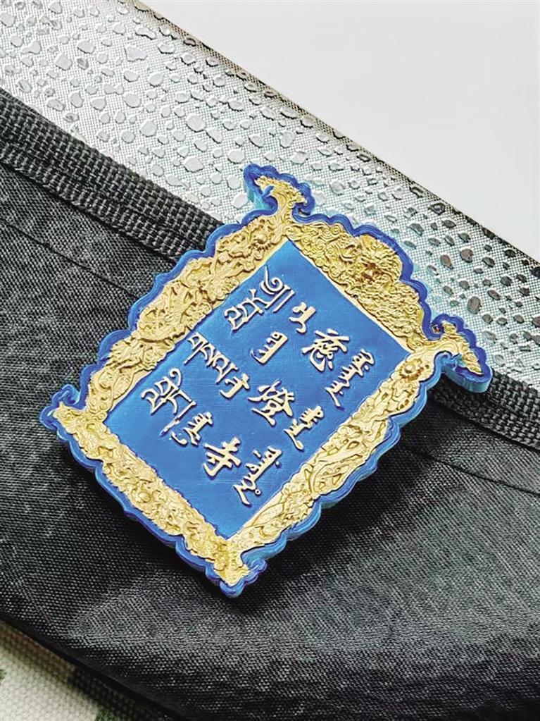 文创展柜前,几位外地游客正围着冰箱贴端详,来自福建的游客林先生一边比对手机里的五塔寺实景照片,一边和同伴感慨:“你看这字体和细节,跟寺里的门匾一模一样,带回去贴在冰箱上,每次看到都能想起这次呼和浩特之行。”“想带点有纪念意义的伴手礼,这个冰箱贴既有历史厚重感又精巧,太合适了!”来自天津的游客李先生一边拍照打卡,一边和同伴分享。工作人员笑着补充,这款冰箱贴最近成了外地游客青睐的“爆款”。
