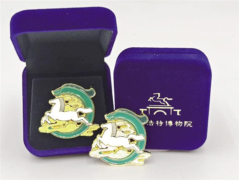 同样吸睛的,还有刚上新的“马上好运”徽章,这款专为2026年丙午马年特别推出的文创,灵感源自呼和浩特博物馆楼顶那尊凌空奔腾的“大白马”雕塑。徽章上,白马昂首驰骋,脚踏翻涌祥云,姿态飘逸灵动,寓意“天马行云,福运随行”。设计团队更别出心裁地将背景巧妙融入内蒙古自治区出土的红山文化“中华第一龙”玉龙图腾,凝练出“龙马精神”这一文化意象,寄托着中华民族自古以来自强不息、奋进向上的精神品格。