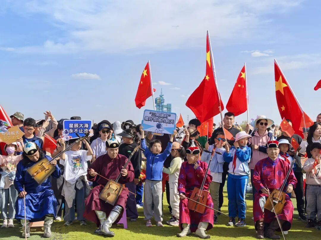 发射场观礼区的额济纳群众拉起马头琴。