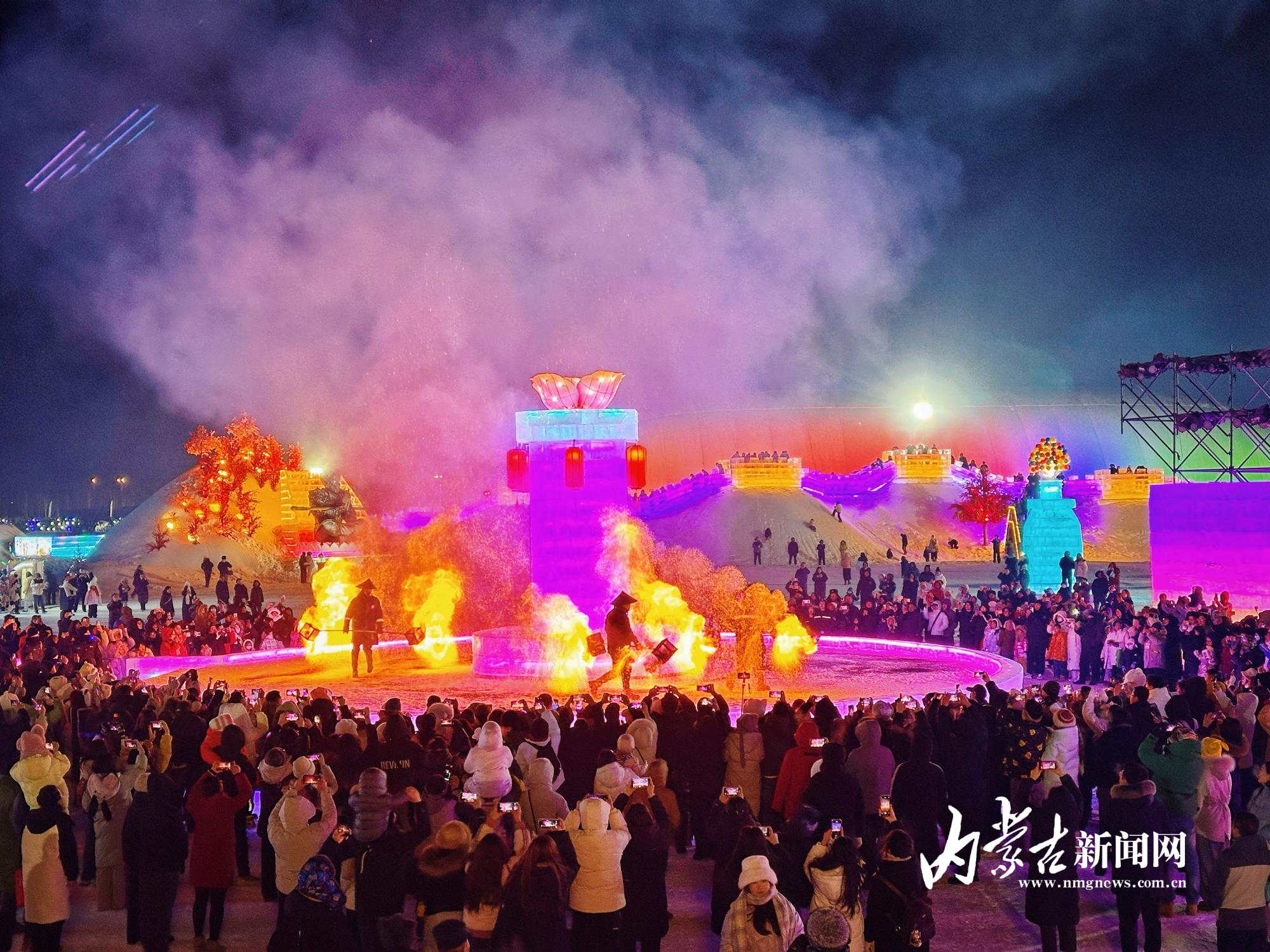 本网讯(草原云·内蒙古新闻网记者 马丽侠)精美冰雕、璀璨烟火、欢乐互动……2025年12月31日,呼和浩特大黑河军事文化乐园内流光溢彩、欢声如潮,以“冰火奇缘·冰雪狂欢”为主题的2026第五届呼和浩特欢乐冰雪节正式拉开帷幕。