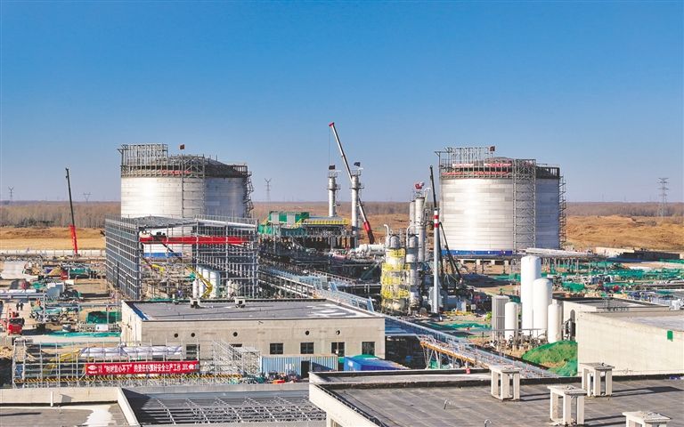 1月4日,在巨融(通辽)能源有限公司120万吨/年液化天然气及配套设施项目现场,大型机械正在吊装设备。截至目前,该项目已完成土建进度90%,安装进度70%。新年伊始,科左后旗工业园区内35个重点项目正在火热建设中,为2026年当地高质量发展注入强劲动能。草原云·内蒙古新闻网记者 孟和朝鲁 摄