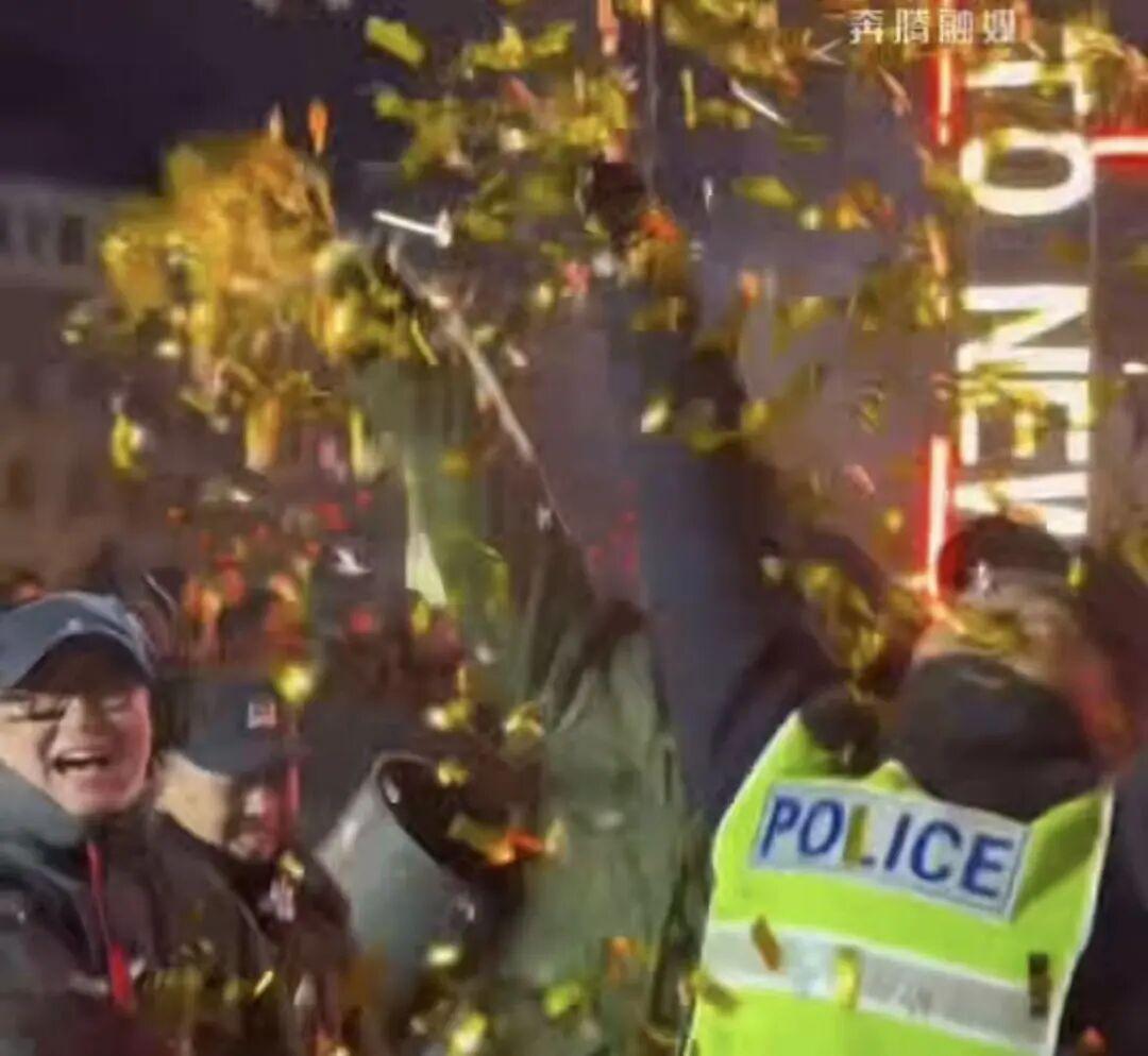 更动人的是那些自发的温柔。当跨年活动结束,人们仍沉浸在喜悦中不舍离去。看到大家合影留念,执勤的警校生俯身捡起地上的金色纸花,笑着向空中扬起——那一刻,彩花如星辰洒落,欢呼与快门声交织,秩序与浪漫同在。这份不期而遇的默契,让守护不再是单向的给予,而成为人与人之间温暖的共振。