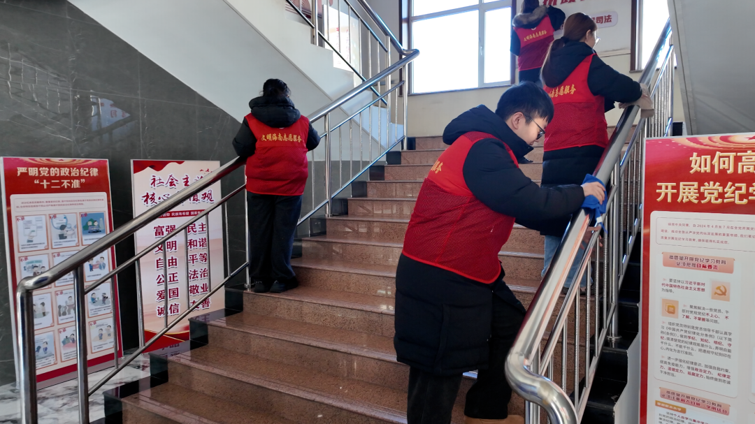 清洁行动不止于居民区,各单位办公场所也同步开启“焕新模式”。工作人员们化身“清洁小能手”,拿起抹布、扫帚,对室内外公共区域全面清扫:擦门窗、抹桌椅、整理办公用品、清理卫生死角,不放过任何一处细节。