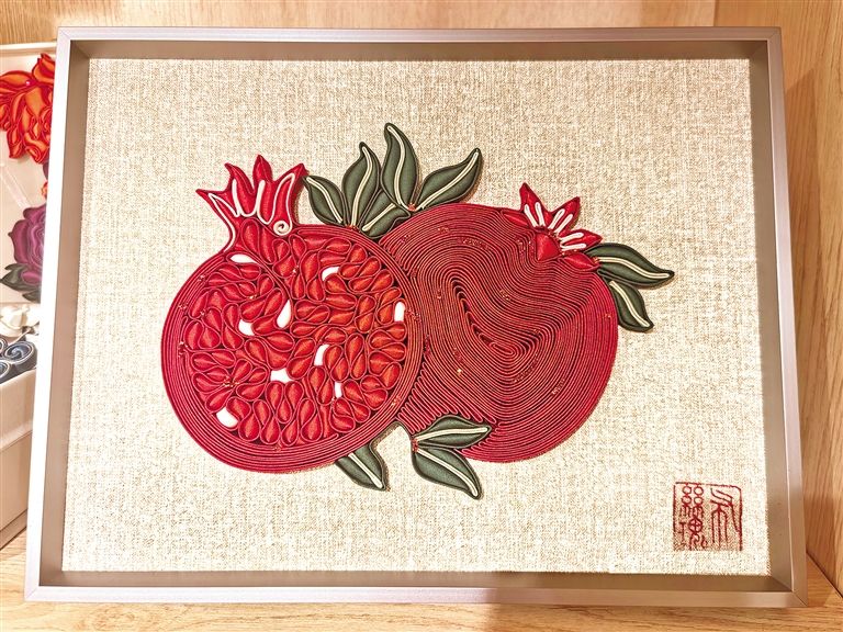 孙亚杰指尖轻捻,一缕绯红色仿绸缎在掌心翻折、缠绕,须臾之间,一枚形似石榴的盘扣造型便显雏形。