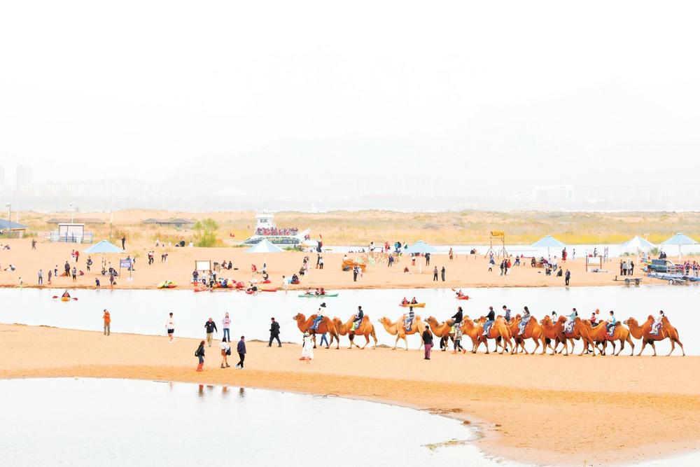 在这里,游客可以轻松解锁皮划艇项目,大家划着皮划艇,在湖面上慢悠悠地游荡;傍晚还可以在湖畔西岸10公里“日落专线”自行车道上骑行,看夕阳缓缓沉入沙漠,并用手机记录这绝美时刻。“乌海的风景真的很美,随手一拍都是大片,不用修图就能发朋友圈。”曾多次到过乌海的游客周瑾说,“尤其是赤足踩在细软沙粒上,仿若置身海滨。”
