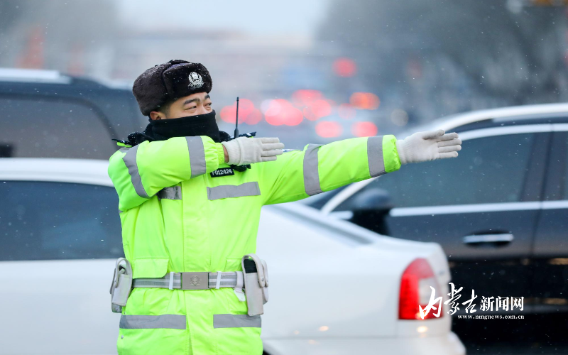 交警雪中疏导交通