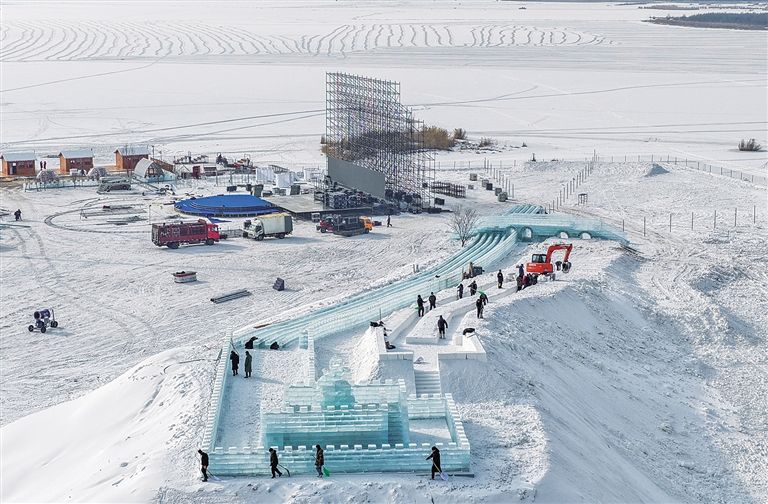 1月7日,工作人员在呼和浩特市土默特左旗的哈素海旅游景区加紧建设冰上娱乐项目设施,为即将启幕的第四届哈素海冬捕节暨“呼和如此HOT”来青城过大年系列活动做准备。据了解,呼和浩特市以“冰雪+”为核心驱动力,推出以“呼和如此HOT”为主题的2025—2026冬季冰雪旅游季,推出300余项特色冰雪文体旅促消费活动,静待全国各地游客前来打卡。草原云·内蒙古新闻网记者 王磊 摄