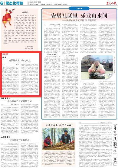2026年1月8日《农民日报》第6版刊发了《内蒙古确保脱贫人口稳定就业》的文章,报道了2025年,内蒙古自治区聚焦“七个一批”,全力以赴稳存量、扩增量、提质量,帮助24.32万名脱贫人口务工就业,同比增长4.5%,超额完成国家下达的目标任务,有力带动脱贫人口增收。