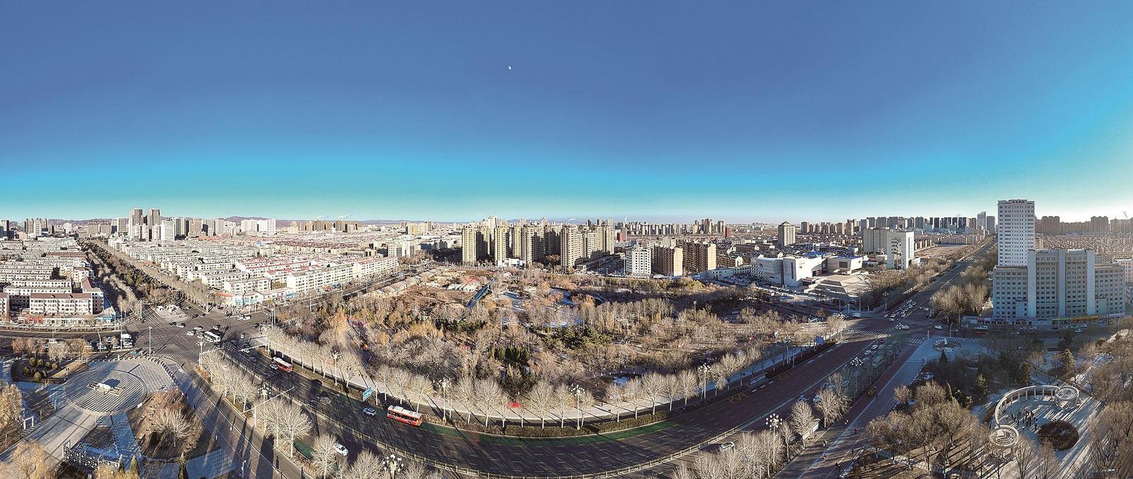 冬日的鹿城,晴空万里,澄澈如洗。极目远眺,城市的硬朗轮廓与“包头蓝”交织,道路纵横交错车水马龙,尽显蓬勃生机。 (李强)