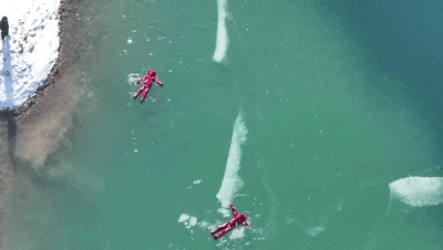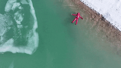 身体悬浮于冰水之间