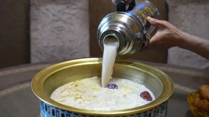 清晨八点,阿拉善左旗巴彦浩特镇梦可早茶馆内热气腾腾,本地常客熟门熟路地落座点单、闲谈。乳白的锅奶茶表面浮着细密奶泡,木勺轻搅,香气裹挟热意扑面而来。焦脆的羊肉沙葱馅饼、纹理分明的薄切酱牛肉,搭配金黄诱人的炸果条、油饼,再辅以炒米、奶皮等特色食材,一桌地道的蒙古早茶尽显阿拉善独有的风土人情。