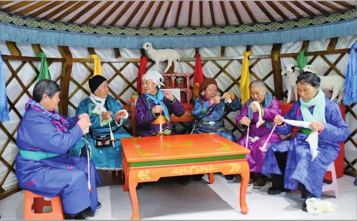 近日,蒙古包内,几位老人围坐在一起,手指灵巧地捻动着柔软的羊绒,一根根毡绳在她们手中逐渐成形。这些由老人们亲手制作的毡绳,将用于传统民俗活动。