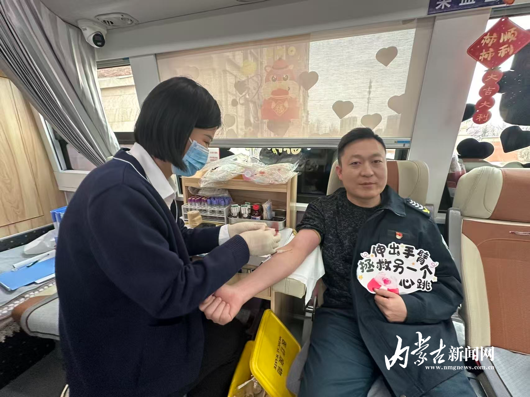 作为队伍带头人,42岁的大队长宝乐尔不仅主动报名,还向队员们宣传献血知识,打消大家的顾虑。