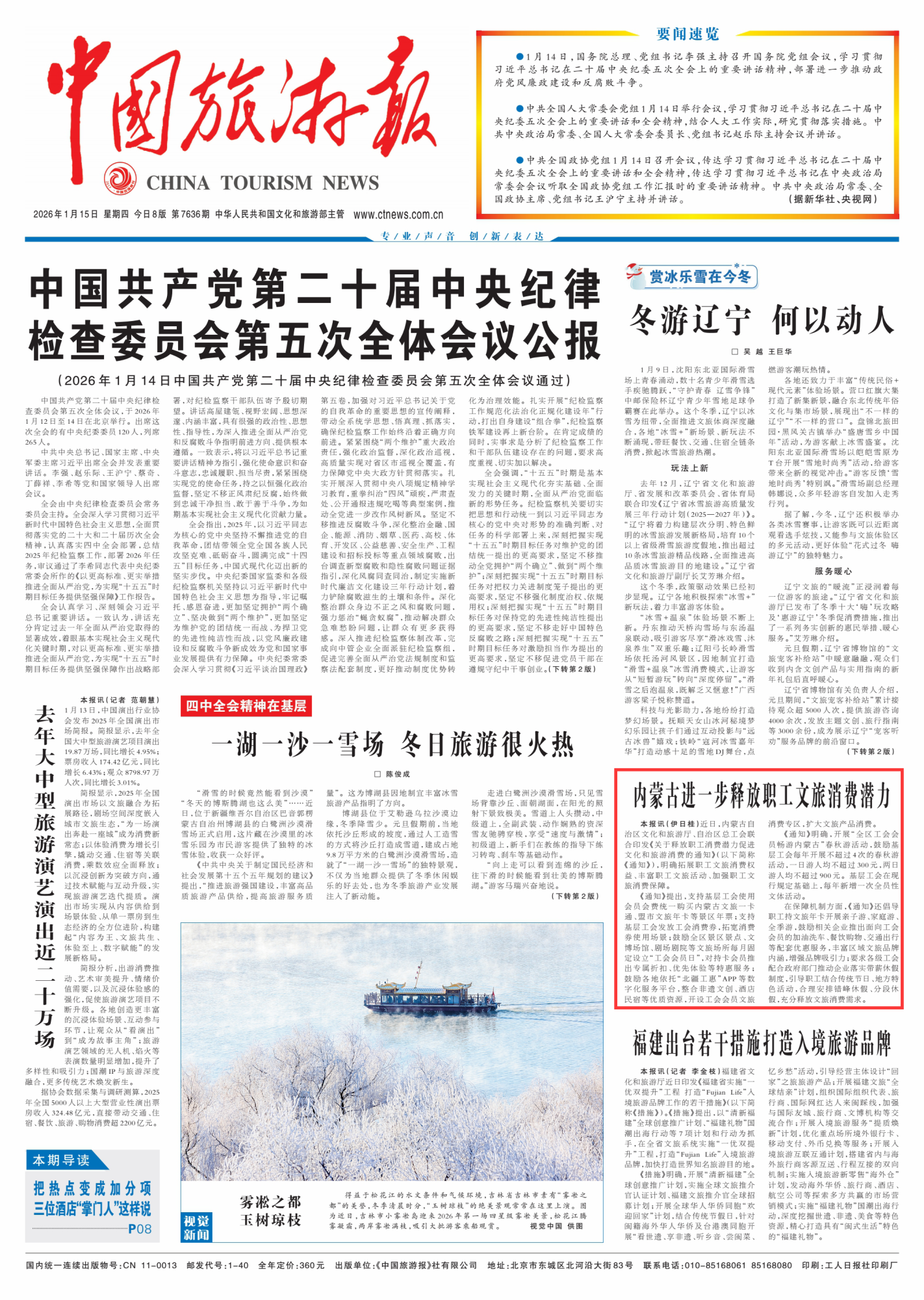 2026年1月15日《中国旅游报》第01版
