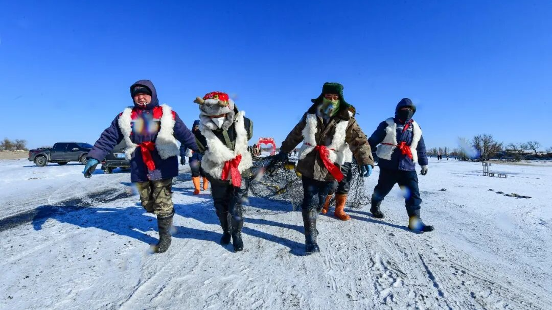 最让人期待的冬捕重头戏一开场,所有人呼啦一下全往冰面涌!走,一起去吧!