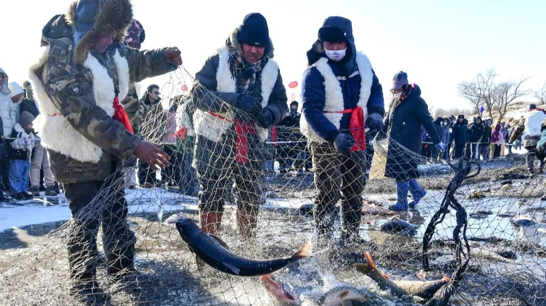 渔把头带着渔民们默契配合,冰镩砸在冰面上“咚咚”作响,大网从冰洞缓缓拉出的瞬间,心都跟着提到了嗓子眼。