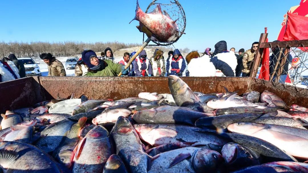 当第一波鲜鱼跃出冰面,银鳞闪闪扑腾不停,全场直接沸腾!密密麻麻的鱼群看得人眼花缭乱,手机相机根本拍不过来,这才是大自然馈赠与传统技艺碰撞的极致浪漫!