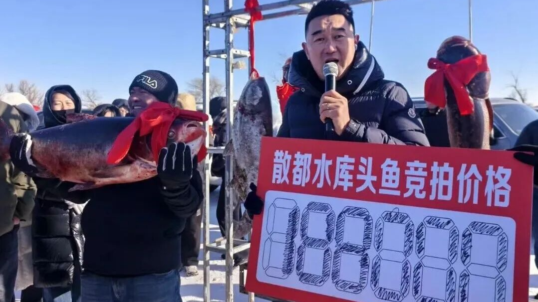 “鱼王”亮相直接被围得水泄不通,33斤的个头壮硕喜人,自带吉祥buff!主持人刚报出8万起拍价,现场竞价声就没停过,你追我赶的架势超激烈。