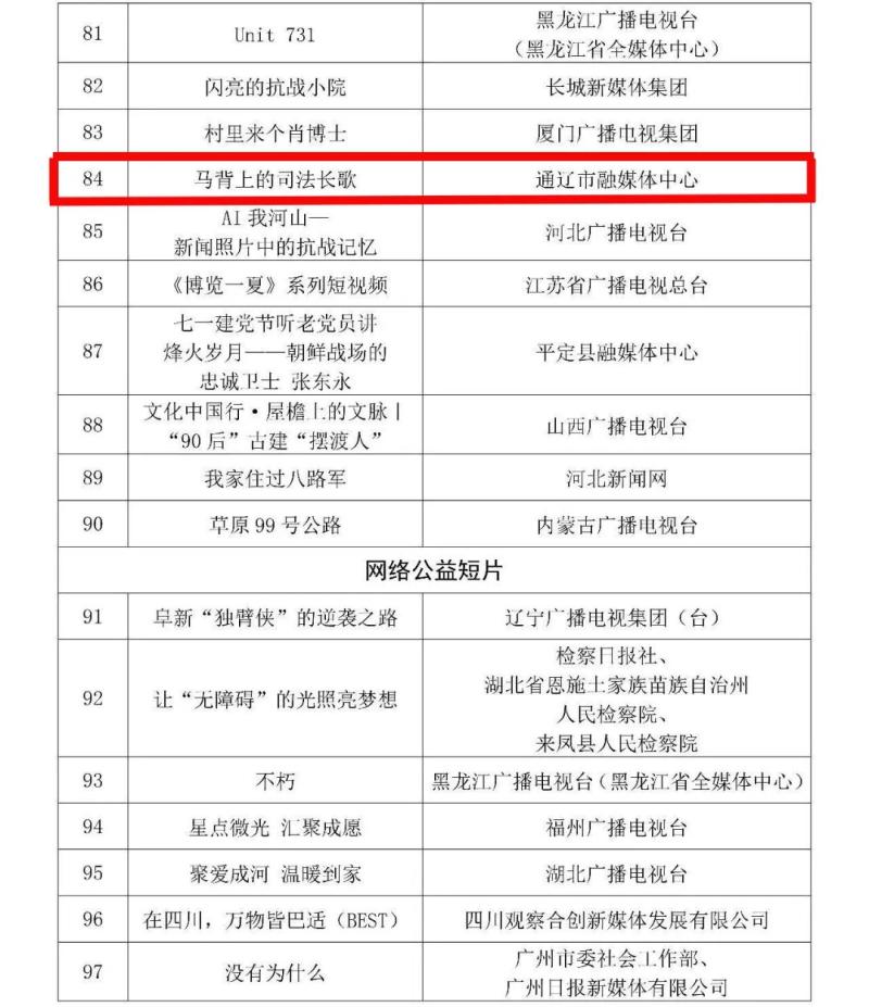 1月15日,国家广播电视总局公布 2025 年第三季度优秀网络视听作品推选活动评审结果。其中,内蒙古广播电视台 2 件作品、通辽市融媒体中心 1 件作品入选,全区共3 件作品上榜。