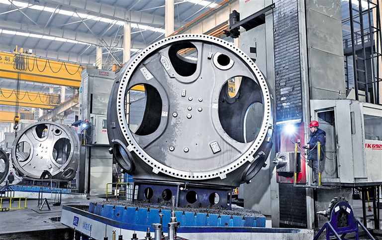 1月15日,在蒙东(通辽)高端重型基础装备制造产业基地,工作人员正在加工风力发电机零部件。近年来,科尔沁区加快风电装备制造产业发展,以内蒙古龙马重工集团作为核心企业建设该基地。基地计划实施26个子项目,涵盖风电85%零部件,全部建成后,将形成年产1万套轴承、2000台主机、3000台增速机、3000台电机及5000台套零部件的生产能力,可实现产值超800亿元,带动就业2万人。草原云·内蒙古新闻网记者  孟和朝鲁  摄