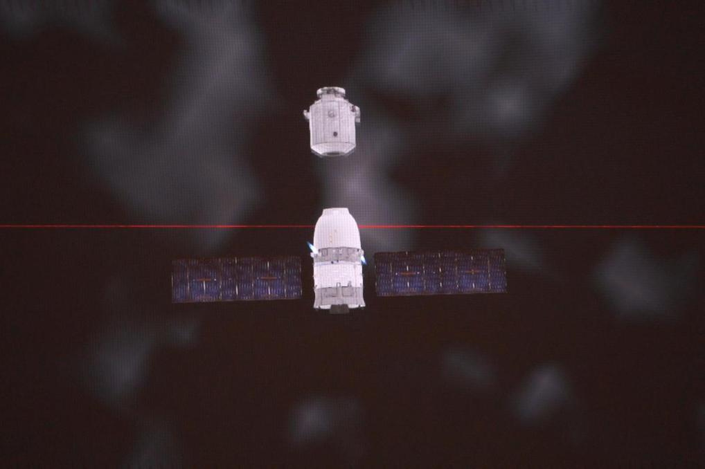 1月19日在北京航天飞行控制中心拍摄的神舟二十号飞船撤离空间站的模拟画面。