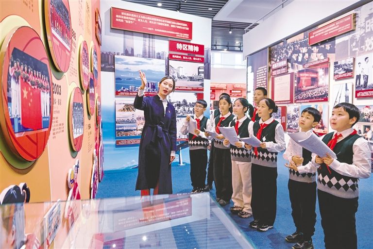 1月19日,小宣讲员在展厅内进行实训。当日,内蒙古展览馆“小小宣讲员”寒假集训营如约而至,活动将持续至1月24日。作为该馆的品牌社会教育活动,“小小宣讲员”培训班自2016年启动以来,已累计吸引近4000名学生参与,让孩子们在学习普通话、体验非遗技艺、讲解经典故事的过程中拓宽视野、增长见识。草原云·内蒙古新闻网记者 王磊 摄