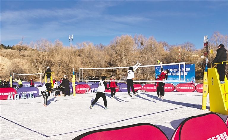 1月16日,2026年鄂尔多斯雪地排球邀请赛在东胜区九城宫国际滑雪场激情开赛。比赛采用3人制,分设男子组与女子组,共吸引来自宁夏、天津、北京等八省区市60多名运动员参赛。草原云·内蒙古新闻网记者 布音额尼尔乐 摄