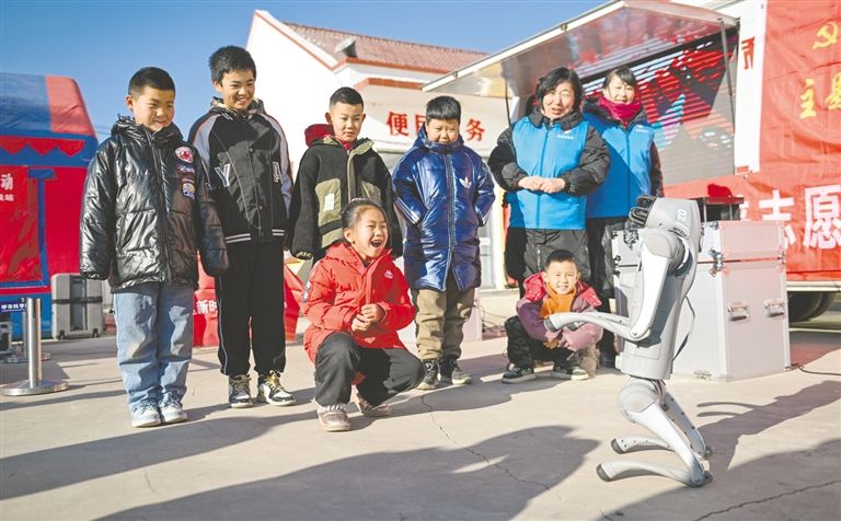 1月20日,文化科技卫生“三下乡”集中示范活动现场,孩子们与机器人互动。当日,呼和浩特市玉泉区文化科技卫生“三下乡”集中示范暨“我们的中国梦——文化进万家”活动在小黑河镇连家营村启动。活动聚焦农村实际需求,通过文艺演出、医疗义诊、科普宣传、理论宣讲、法律援助等多元服务,推动优质资源下沉基层,把服务送到群众心坎上。 草原云·内蒙古新闻网记者 王磊 摄