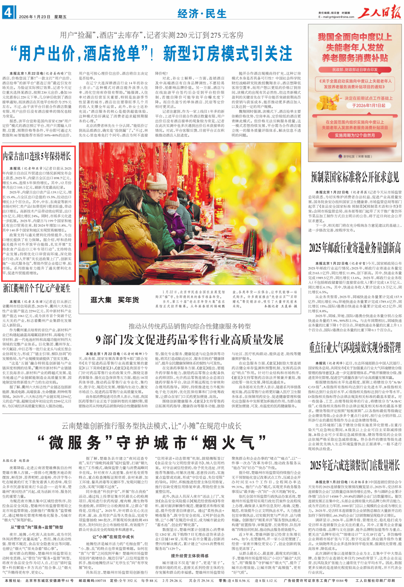 2026年1月23日,《工人日报》第4版刊发题为《内蒙古出口连续5年保持增长》的文章,报道了2025年,内蒙古全区出口898.7亿元,增长5.4%,连续5年保持增长。其中,12月份单月出口105.1亿元,刷新月度最高纪录。