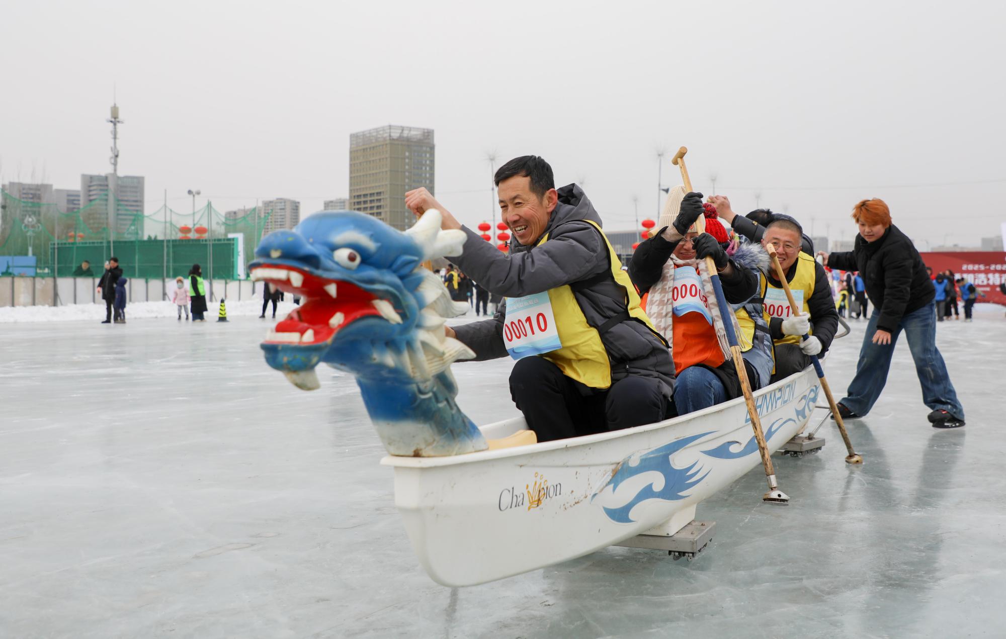 1月25日,由呼和浩特市体育局主办,呼和浩特市全民健身服务中心承办的2025~2026年大众冰雪季冰雪战队联赛活动在呼和浩特市东河冰雪场快乐上演。当日,来自呼和浩特的上百名冰雪爱好者参加了冰上龙舟、雪地拔河、冰上自行车、雪地两项赛等7个趣味竞技项目,畅享冰雪运动的速度与激情。