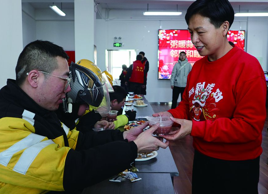 捧着热气腾腾的腊八粥,外卖骑手刘伟感动地说:“腊八节能喝上这碗热粥,既品到了年味儿,更感受到了被社区惦记的温暖。”