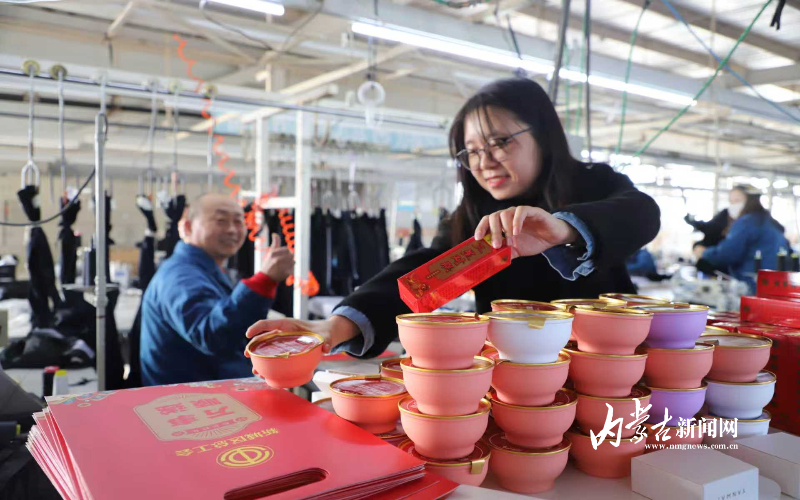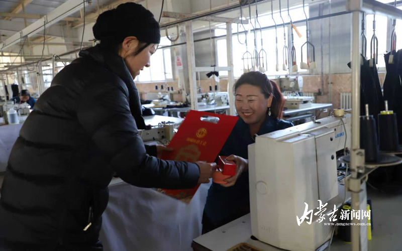 1月26日,呼和浩特市新城区总工会工作人员走进内蒙古祺泰服饰业有限责任公司车间,将象征美好寓意的腊八粥、春联送给基层一线职工,传递工会关怀与温暖,致敬岗位奉献,增强职工归属感与幸福感。摄影/草原云•内蒙古新闻网记者 王利军 实习生 张禹曦