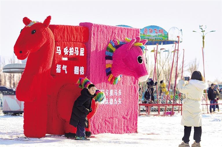 首先映入大家眼帘的20米高的巨型雪人憨态可掬,成为标志性打卡点,市民与游客纷纷驻足留影,定格冰雪童话时刻。涂鸦装点的草原冰雪瑞士卷造型充满萌趣,随手一拍便氛围感拉满。