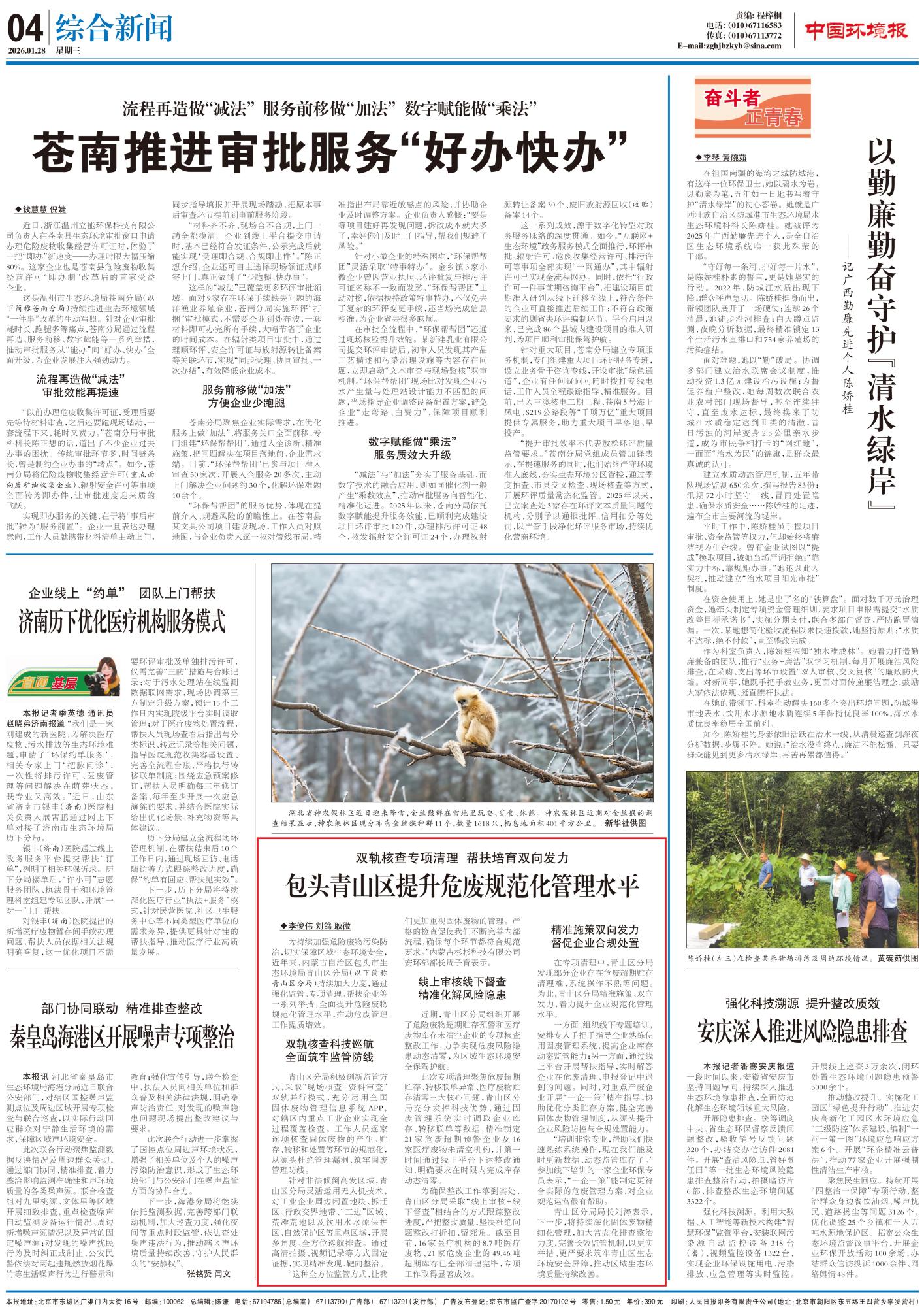 2026年1月28日,《中国环境报》第4版刊发题为《双轨核查专项清理 帮扶培育双向发力 包头青山区提升危废规范化管理水平》的文章,报道了近年来,内蒙古自治区包头市生态环境局青山区分局持续加大力度,通过强化监管、专项清理、帮扶企业等一系列举措,全面提升危险废物规范化管理水平,推动危废管理工作提质增效。