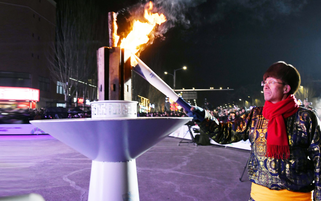 热场环节结束后,开幕式正式开启。万众期待的点燃圣火仪式如期而至,象征着团结、奋进与希望的火焰在寒风中升腾跳跃,照亮了整片冰雪草原。