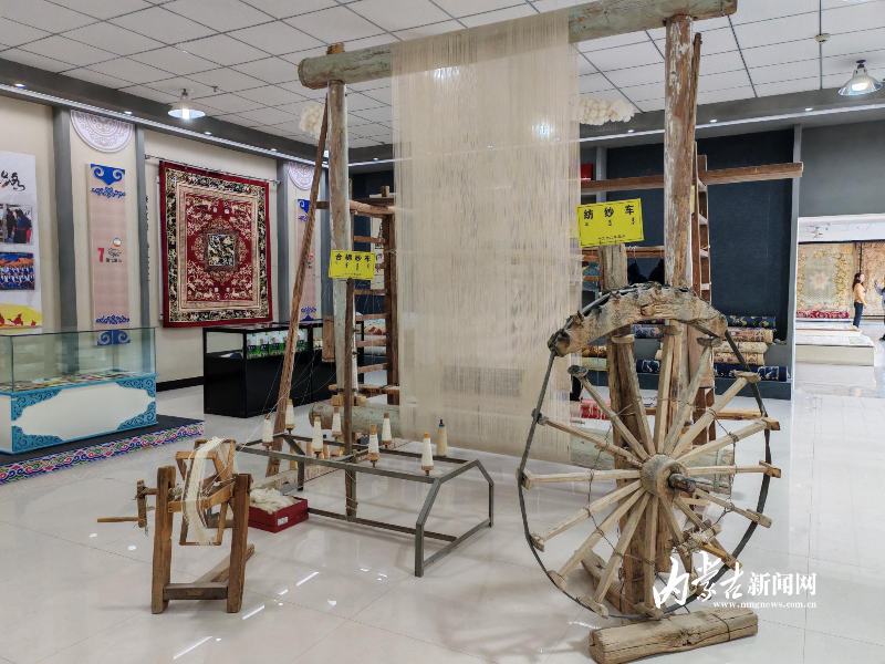从车间走进仿古地毯展厅,如同一场历史与传统的穿越之旅。各类古朴典雅、质地实密的地毯和颇富年代感的生产工具,默默讲述着时光里的故事。