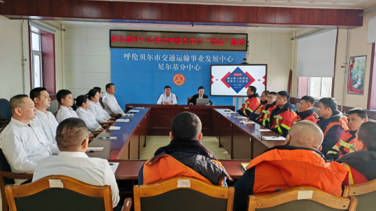 李双丽结合参会感受与工作实际,向大家传达呼伦贝尔市“两会”精神,管理与养护人员共学共践。摄影 郑明