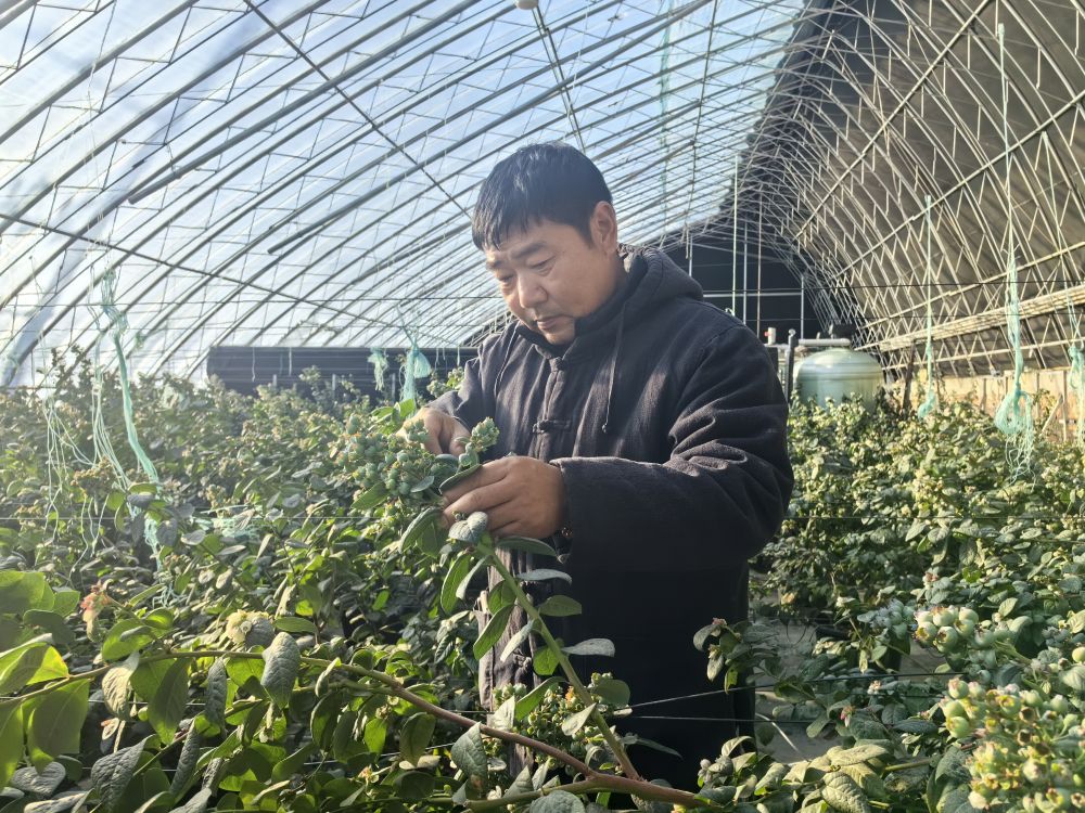 走进蓝莓种植大棚,无土栽培的苗株长势喜人,智能温控系统实时精准调节水肥和温度。辽宁蓝创慧选公司通过招商引资在这里搞起了蓝莓种植,目前58栋大棚已投产,其中35栋大棚已结果,静待收获。“咱们这规模在当地数一数二!”种植大户东秀斌蹲在地头查看长势:“头年试种亩产就有4000斤,按市价60块钱算,效益相当可观。”如今,清河镇在西姜村、大席棚村、积善屯村3个园区的蓝莓栽植面积已达88亩,预计总产值可达1700万元。