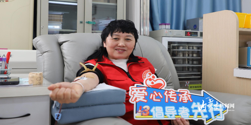 在内蒙古自治区血液中心,红马甲志愿者已成为这里的常客。看着鲜红的血液缓缓流入血袋,张芝平笑着说:“60岁就不能献血了,我要保持良好的身体素质和心态,争取每次献血都成功。孙子和外孙明年就18岁了,他们能够献血的时候,我要把无偿献血的接力棒传给他们,让爱心连绵不绝。”