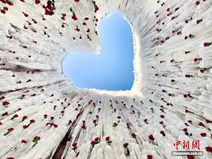 通辽市西辽河冰雪大世界启幕 “冰玫瑰瀑布”。