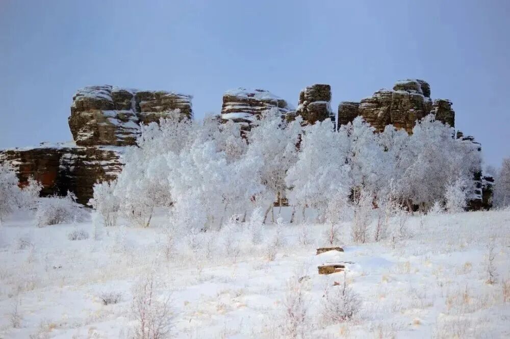 在乌兰布统草原,雪原如画卷铺展,跨上雪地摩托,驰骋于苍茫天地间。探访克什克腾石阵,看冰凌包裹嶙峋奇石,宛若奇幻秘境。
