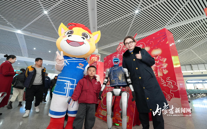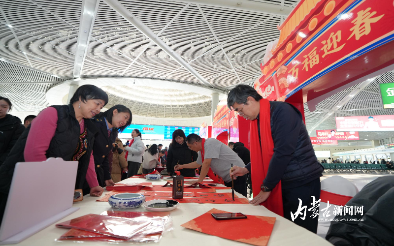 2月2日,2026年春运正式开启。记者在呼和浩特东站候车大厅内看到,一场以“文化进万家 温暖回家路”为主题的文化活动热烈上演。来自呼铁乌兰牧骑的文艺工作者为往来旅客献上精彩节目,书法家们现场挥毫泼墨,送出一副副对联和福字……记者从中铁呼和浩特局了解到,包头、鄂尔多斯、巴彦淖尔等车站和部分旅客列车也在春运首日开展了形式多样的文化活动,为返乡途中的旅客献上诚挚祝福。
