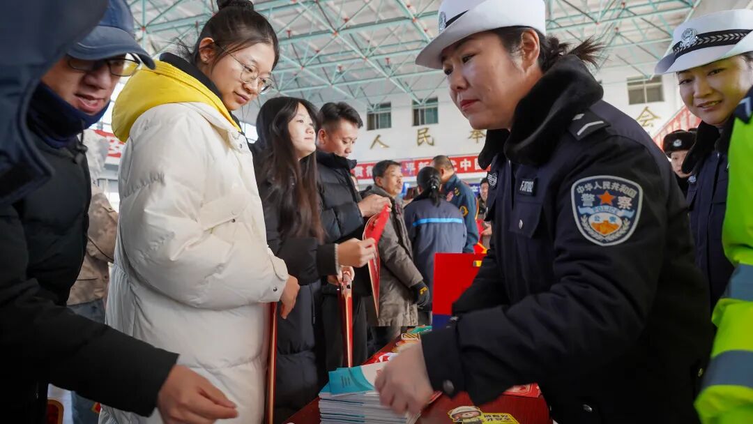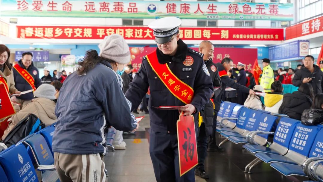 启动仪式后,交通安全宣传服务与检查保障工作同步开展。在汽车站候车室,民警向乘客发放交通安全宣传单、平安出行春联,面对面讲解出行安全常识;在发车区域,志愿者协助民警引导车辆有序停放,提醒乘客系好安全带。“拿到春联很喜庆,还学到了安全知识,太贴心了!”准备返乡的乘客李女士拿着宣传资料说。