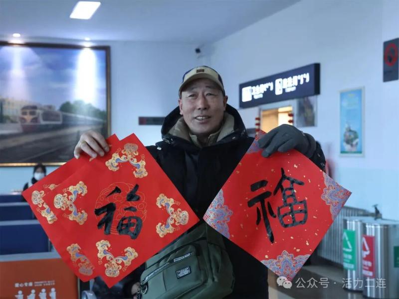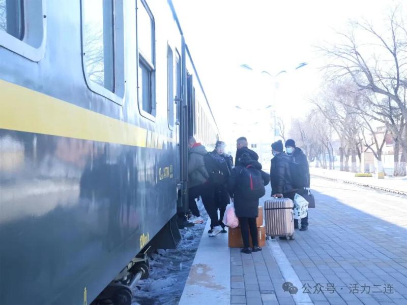 在二连车站,同样洋溢着浓厚的春运氛围。铁路部门开展送“福”字活动,书法爱好者们挥毫泼墨,现场书写“福”字赠予即将踏上旅途的旅客。春运首日,旅客数量明显增多,人们带着行李早早排起长队,秩序井然。二连开往呼和浩特的6858次列车检票后,旅客在工作人员的引导下,快速有序登上列车。