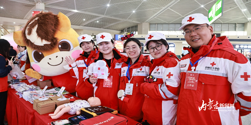 内蒙古自治区红十字会、呼和浩特市红十字会联合开展的“志在愿在·善言善行——2026年春节红十字志愿服务活动”已于1月26日正式启动,活动将持续至2月13日。在此期间,红十字志愿者们将坚守在呼和浩特市火车站、机场等重点交通枢纽,聚焦春运出行特点和旅客实际需求,开展应急救护知识培训普及、便民咨询与引导、健康守护与人文关怀、重点旅客帮扶等贴心暖心的志愿服务。他们就像春运路上的守护者,用行动守护平安新春、传递人间温情。