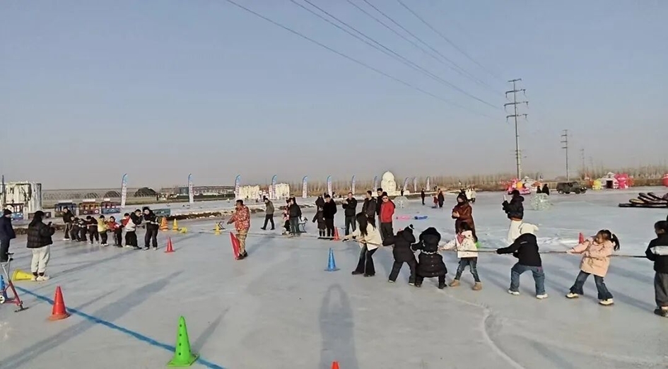 趣味冰雪赛事更是将热闹氛围感直接拉满。冰上拔河欢乐有趣,大家自发组队对垒,攥紧麻绳奋力向后拉,脚下却站不稳,有人刚发力就踉跄着摔在冰面上,有人憋足劲也拉不动分毫,逗得现场笑声不断,让冬日多了别样的热闹。除了冰上拔河,拉雪橇、冰上自行车、冰上划龙舟等多项亲子运动项目也各有乐趣,大人小孩玩得不亦乐乎。“和朋友一起来体验冰上拔河,看着简单其实挺难,冰面太滑根本使不上劲,还总打滑,玩的就是一个开心,氛围感特别棒。”游客王新说。(王舒艺 牛源源 何志伟)